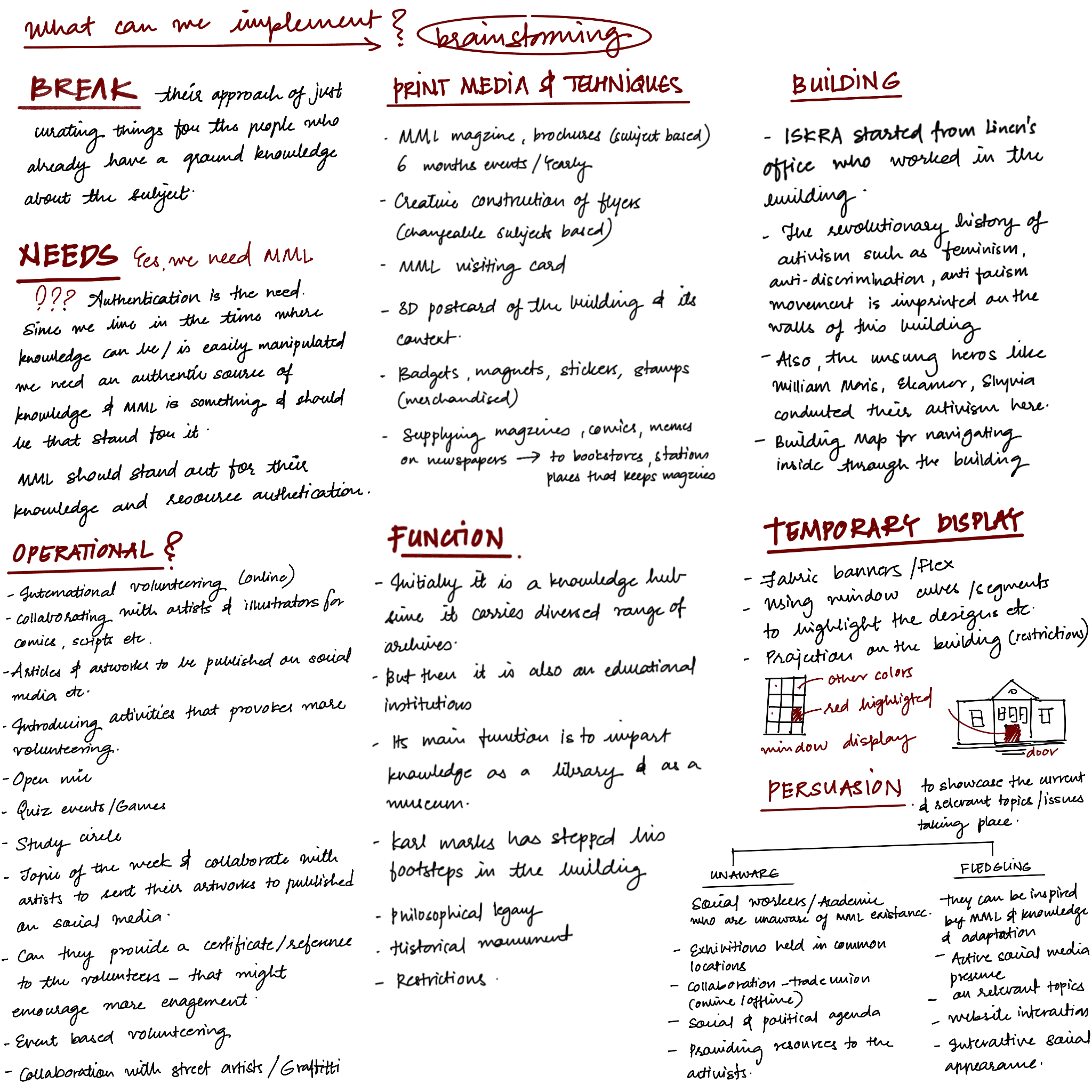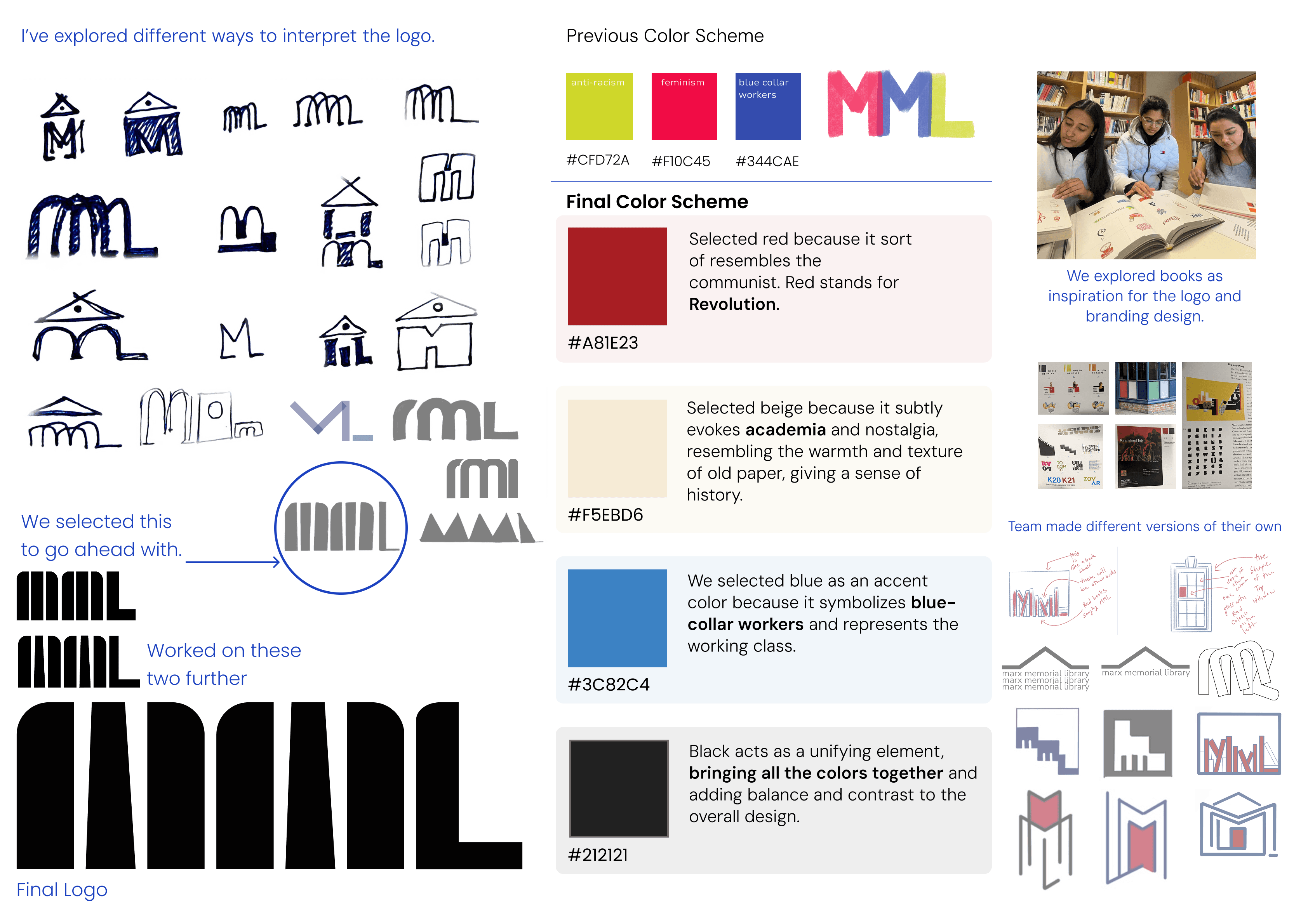 Before we even stepped inside the Marx Memorial Library, we spent time researching its history so we knew exactly what questions to ask. When we visited, we sat down with the people who run it and the people who use it to understand how the library actually works and what was holding it back. We realized a big problem: the library is full of incredible stories, but it "fades into the streets" because there’s no clear signage and it is almost "silent" online. Our mission became clear, we needed to take this "hidden" archive and turn it into a "house of knowledge" that is easy to find, fun to use, and feels like home.