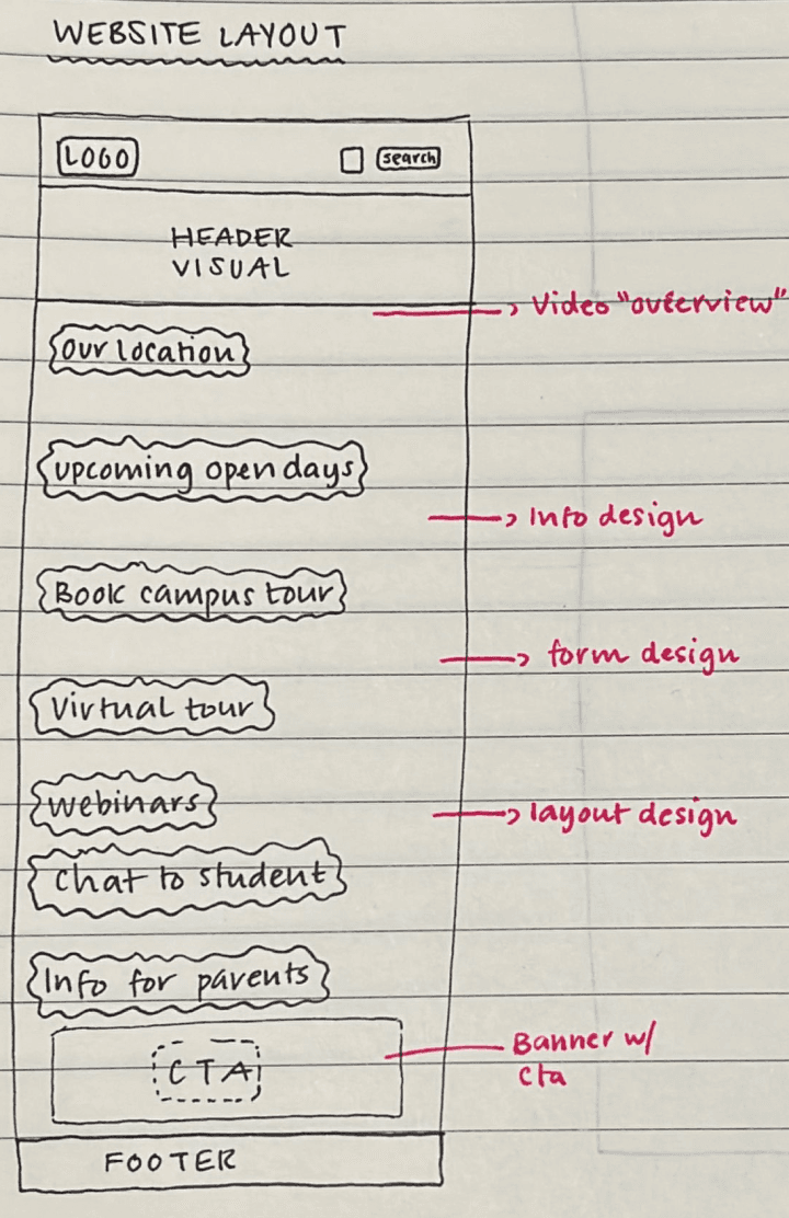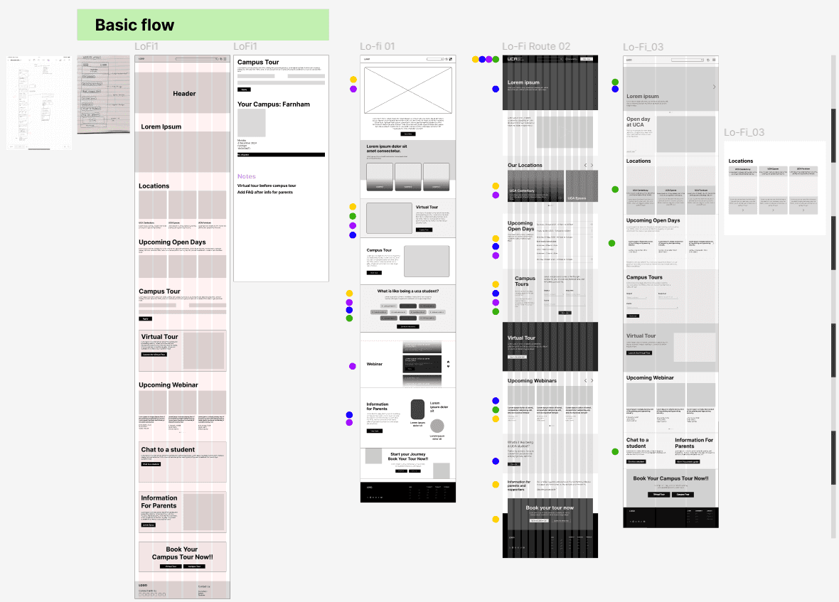 Started with prioritizing layout essential features, such as locations, upcoming Open Days, campus tours, and webinars, while integrating a clear structure with visually distinct sections. Updated flow ensures easier access to key information, reduces navigation complexity and improving access to content hierarchy, making the website more user-friendly and efficient.