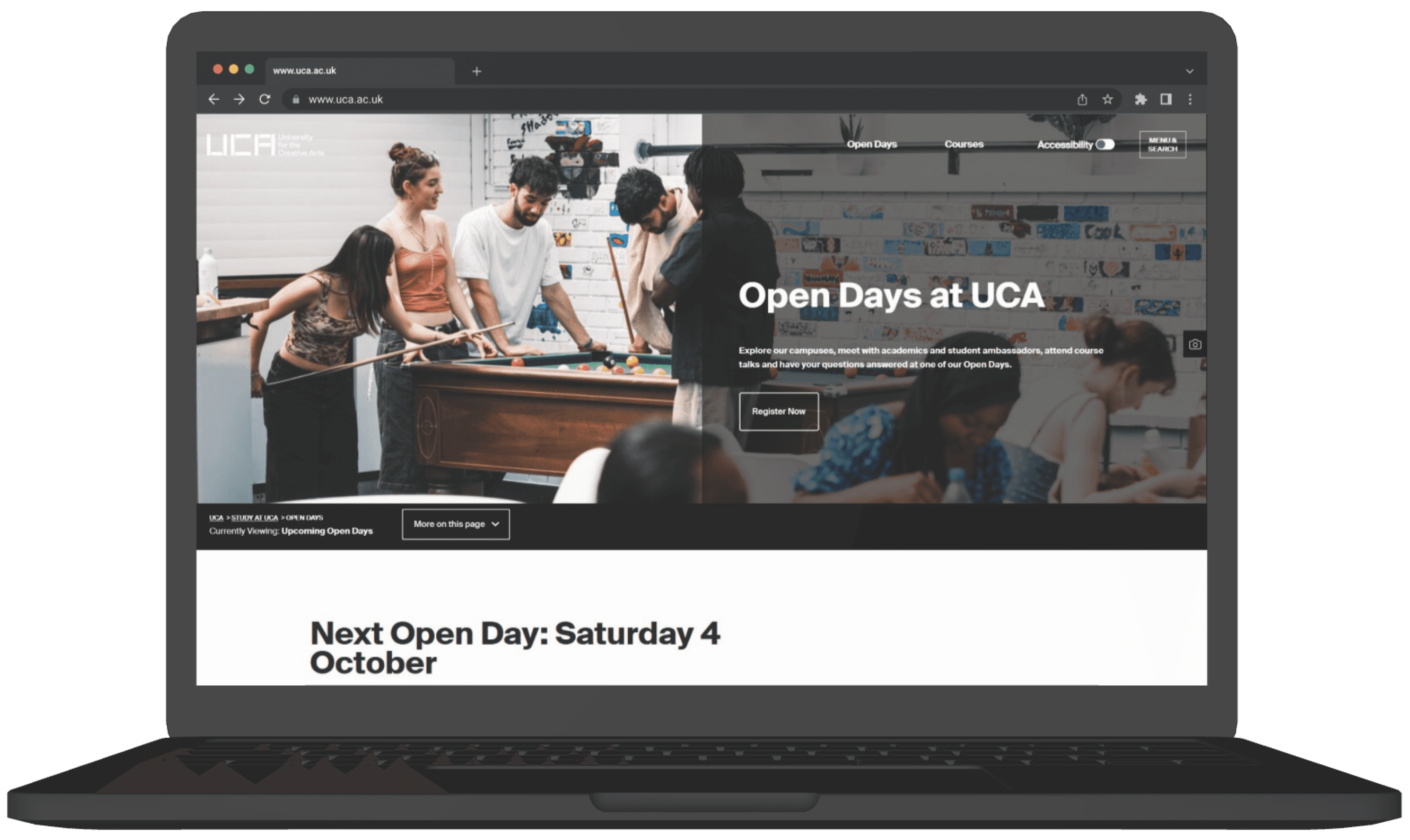 UCA Open Day Website Redesign